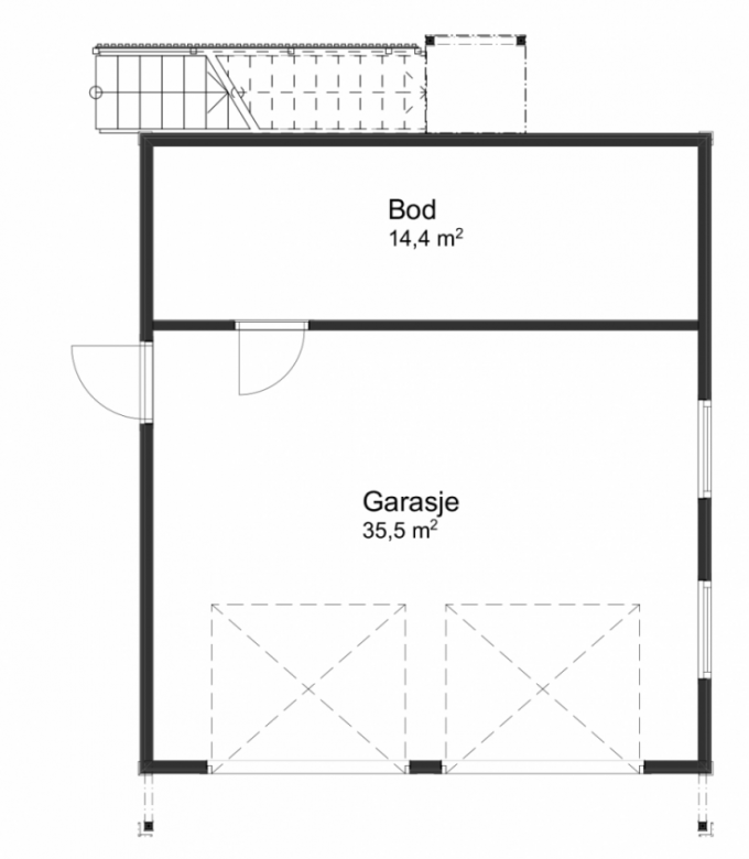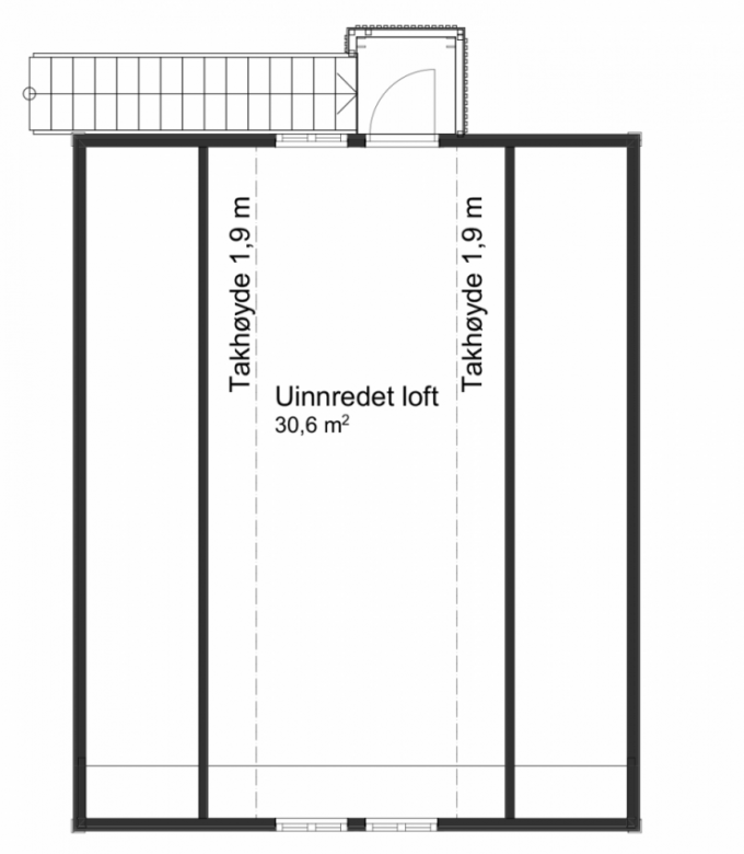 En utendørs trapp tar deg opp til garasjeloftet. En praktisk stue/lagerrom hvor ungdommene kan ha det hyggelig sammen, eller som du kan benytte som hobbyrom eller lager.